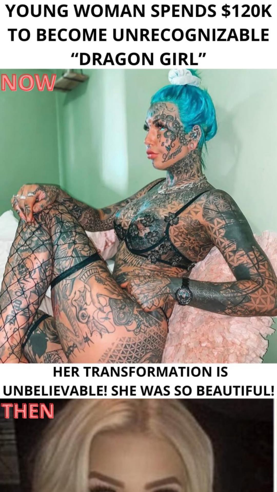 However, the journey hasn’t been without its challenges. A few years ago, when she decided to tattoo her eyeballs, things nearly went horribly wrong.